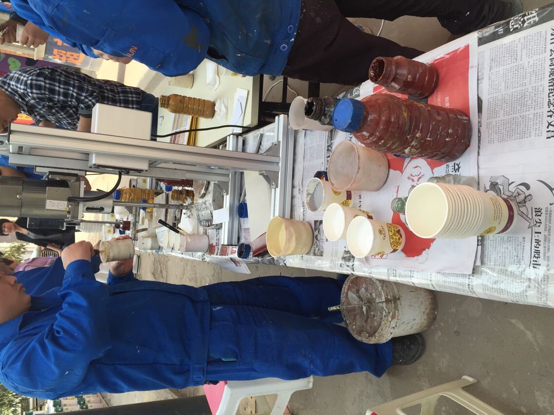 2015年4月10號(hào)下午,剛上班,負(fù)責(zé)多彩漆調(diào)色的幾位超人就已經(jīng)集合到比賽區(qū),桌面上也都擺上了各種需要用的器具,然后這幾位超人開始各自拿著自己需要的器具開始調(diào)配起來。